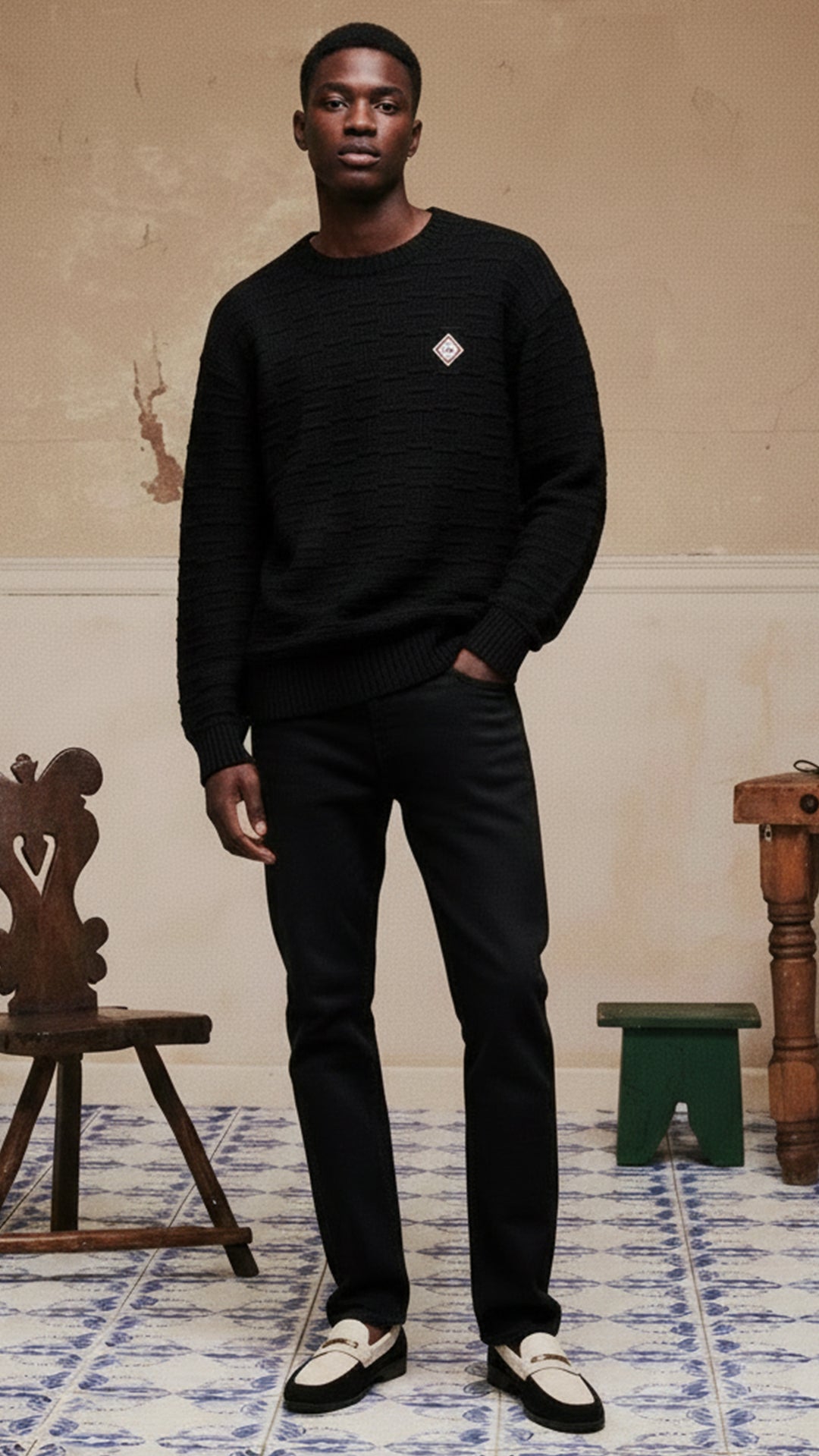 Çağdaş lüksü spor estetikle buluşturan Casablanca, bu erkek triko modeliyle sofistike ama rahat bir stil anlayışı sunuyor. Markanın karakteristik modern çizgilerini taşıyan bu siyah triko, minimal tasarımı ve ikonik logo detayıyla güçlü bir moda duruşu sergiler. 🖤✨