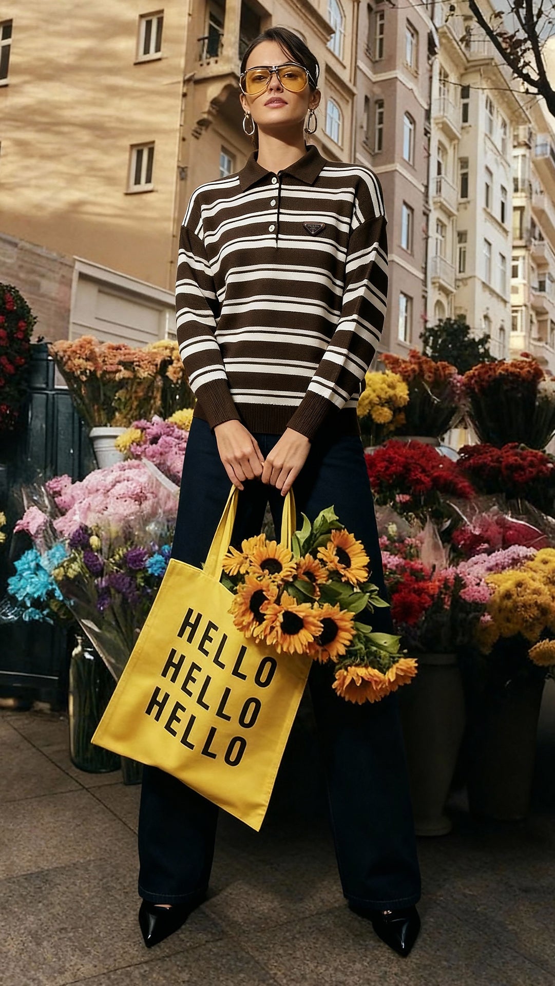 Kahverengi ve krem tonlarındaki şerit desenler, vintage esintili bir estetik sunarken aynı zamanda şehir stiline mükemmel uyum sağlar. Jean, kumaş pantolon veya eteklerle kolayca kombinlenebilen bu parça, gardırobun en kullanışlı triko modellerinden biri olmaya adaydır.